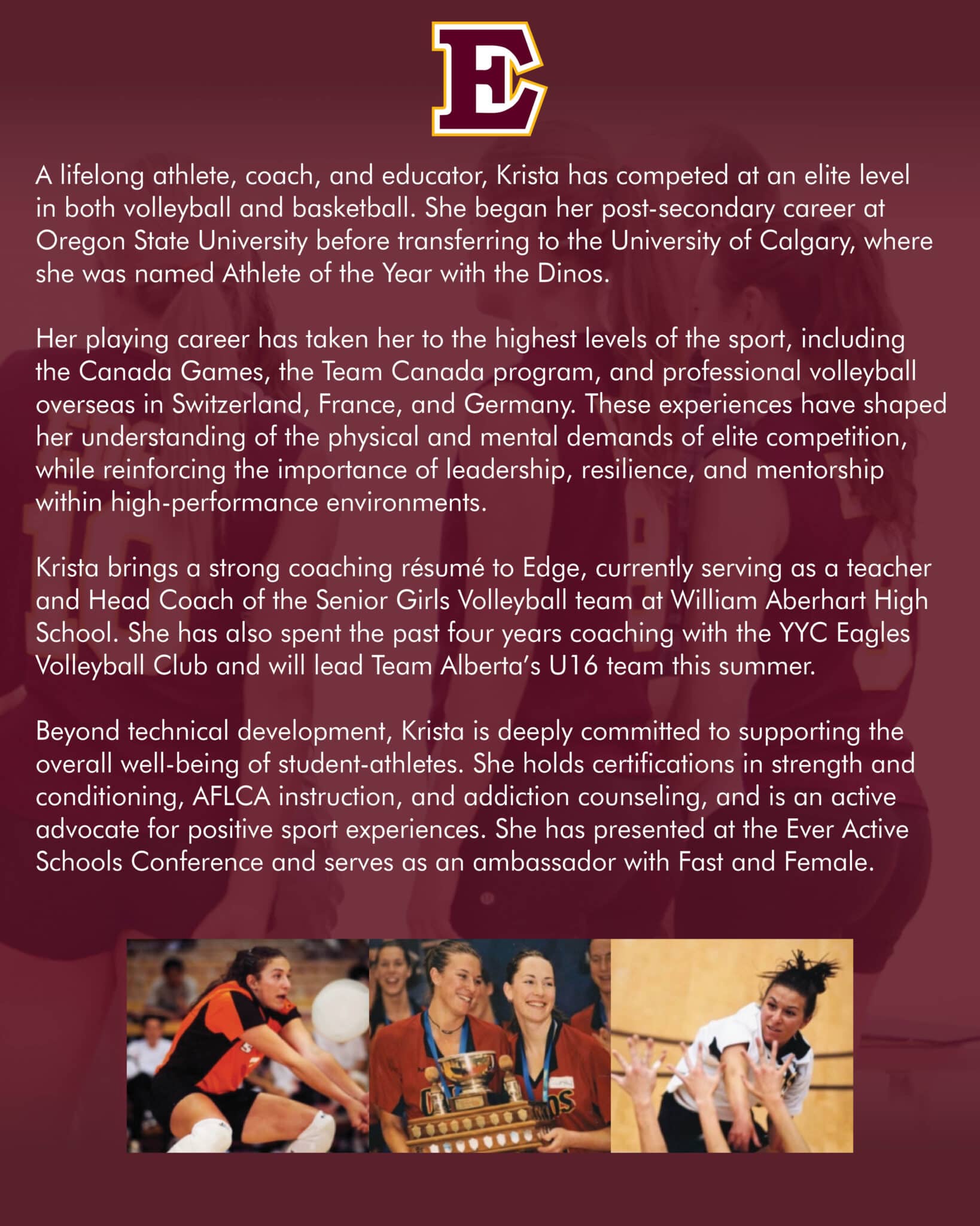 Bringing an exceptional blend of high-performance experience, coaching expertise, and a deep commitment to student-athlete development, Krista is set to make an immediate impact at Edge.